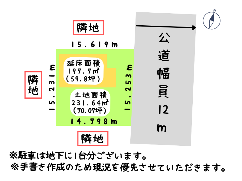 接道状況: 北側幅12mの公道に15.2m接道