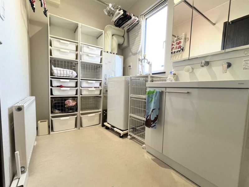 その他: 整形地・庭10坪以上・日当たり良好・物置・玄関フード・モニタ付きインターホン・シューズボックス・床暖房(玄関タイル部分)・照明器具・フローリング・エアコン・ガスパネルヒーター・コンロ3口・システムキッチン・カウンターキッチン・食器洗乾燥機・シャンプードレッサー・24時間換気システム・エコジョーズ・浴室乾燥機・浴室暖房・追い焚き風呂・浴室1坪以上・温水洗浄トイレ・ウォークインクローゼット・全居室収納