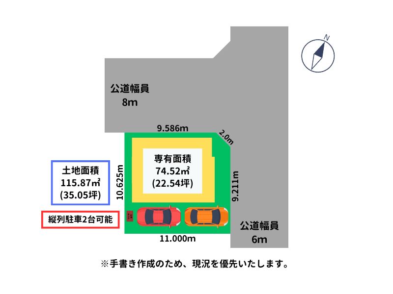 接地状況: 北側 幅8mの公道に9.586m接道