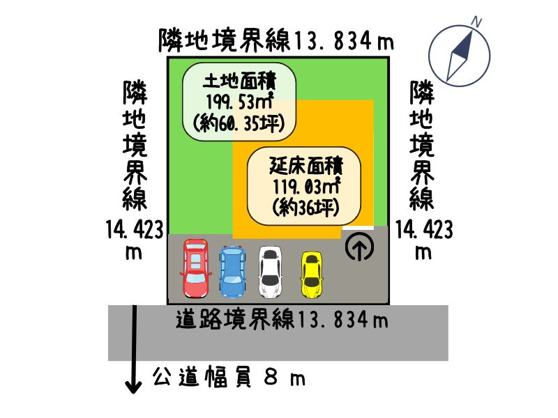 接地状況: 南東側 幅8mの公道に13.8m接道