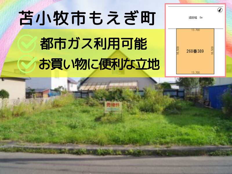 🍀苫小牧市もえぎ町🍀敷地68坪!閑静な住宅街🏠都市ガス利用OK✨建築条件がないため、お好きなハウスメーカー・工務店様で建築可能です🏠ご相談も承っております😌錦岡小学校・凌雲中学校区🏫コメリパワー・スーパーアークス・セブンイレブン・ツルハドラッグが徒歩10分圏内にあり、お買い物にも便利な立地です🌈詳細はお気軽にお問合せください😊