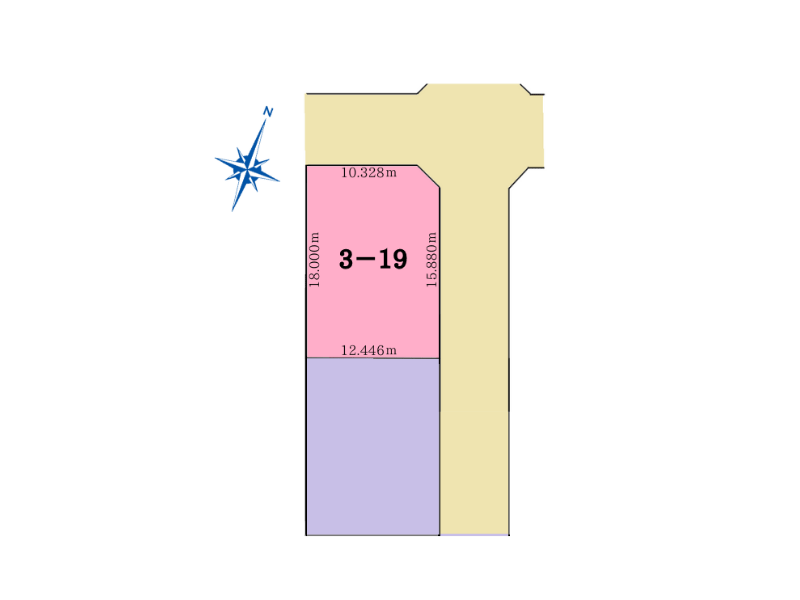 接地状況: 北側 幅6.5mの公道に10.328m接道/東側 幅6.5mの公道に15.880m接道