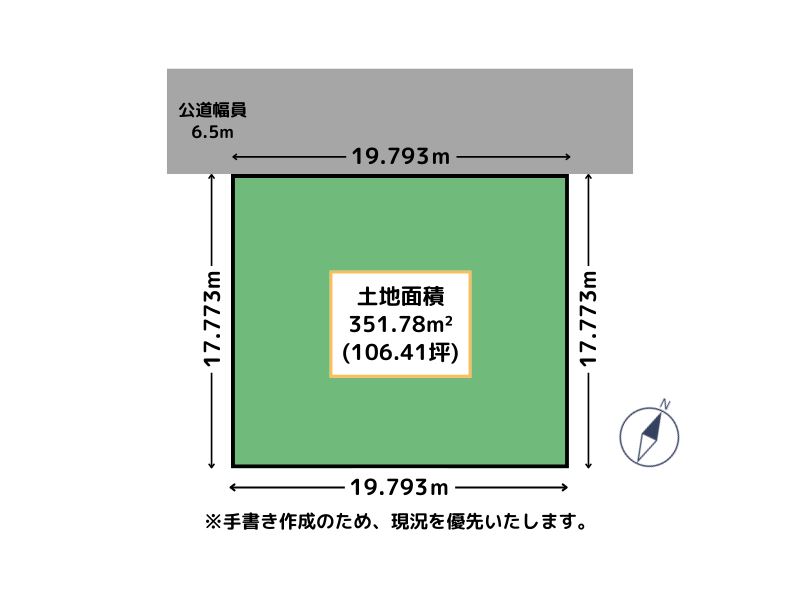 接地状況: 北西側 幅6.5mの公道に19.793m接道