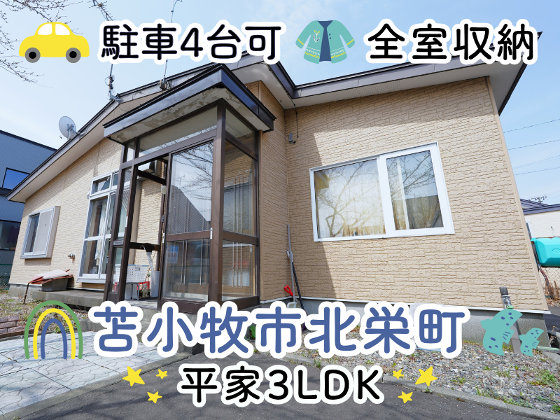 【月々37,593円のお支払い】※お借入の参考例:お借入総額1400万円の場合 (当初固定金利3年・金利0.7%・お借り入れ期間35年・ボーナス払いなし) ※その他諸費用発生致します。🔶苫小牧市東部の人気エリア!北栄町の平家住宅。駐車は4台可能。🔶リビングは約13帖あり、ソファやテーブルを置いても十分な広さ、家族みんなでゆったりと過ごせます。🔶全居室収納つきです。コンパクトな平家でも、整理整頓バッチリです😊🔶解体やリフォームのご相談も承っております。🔶ご内覧のご希望・詳細・ご質問はエイシン不動産までお気軽にお問い合わせ下さい。