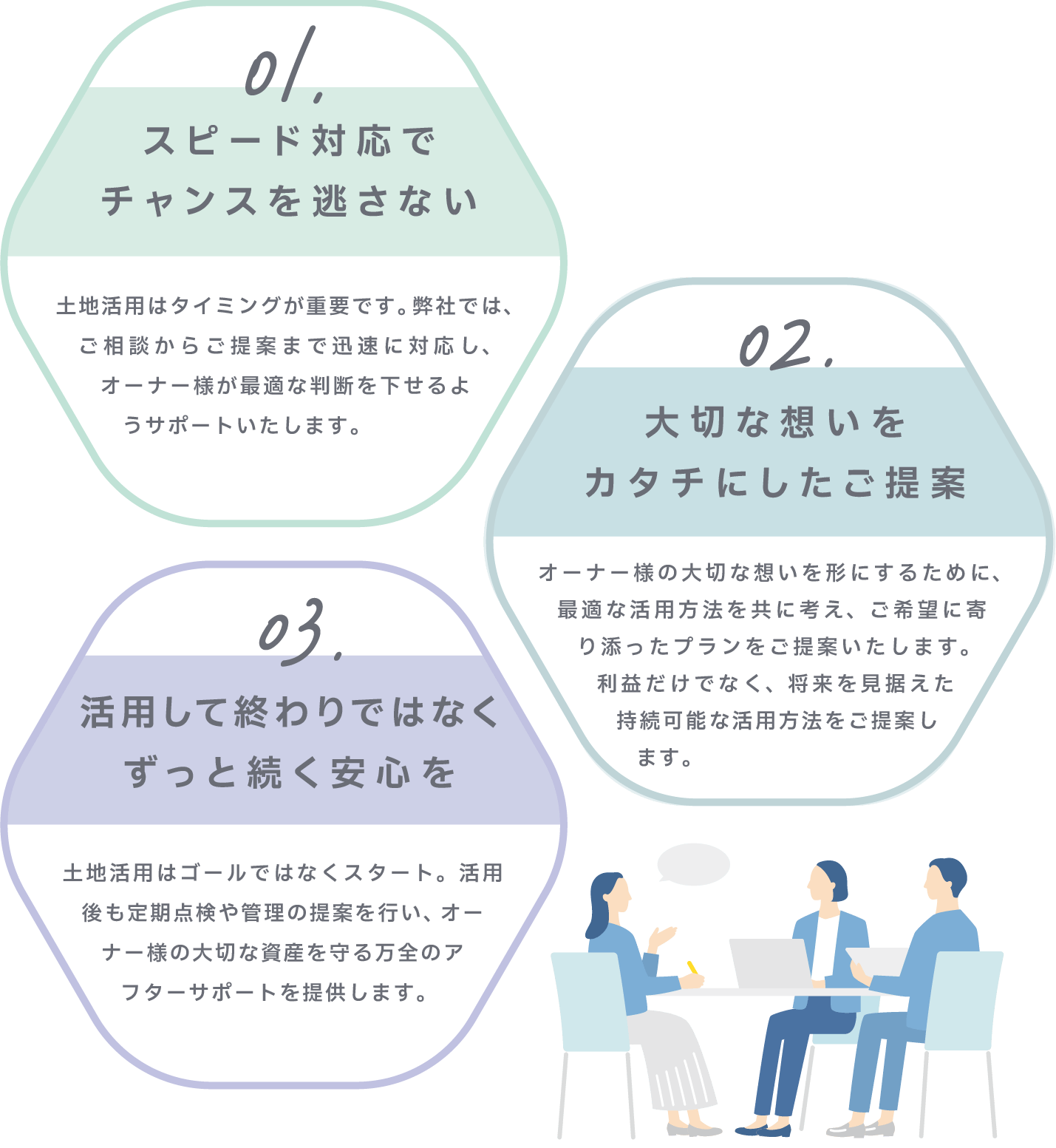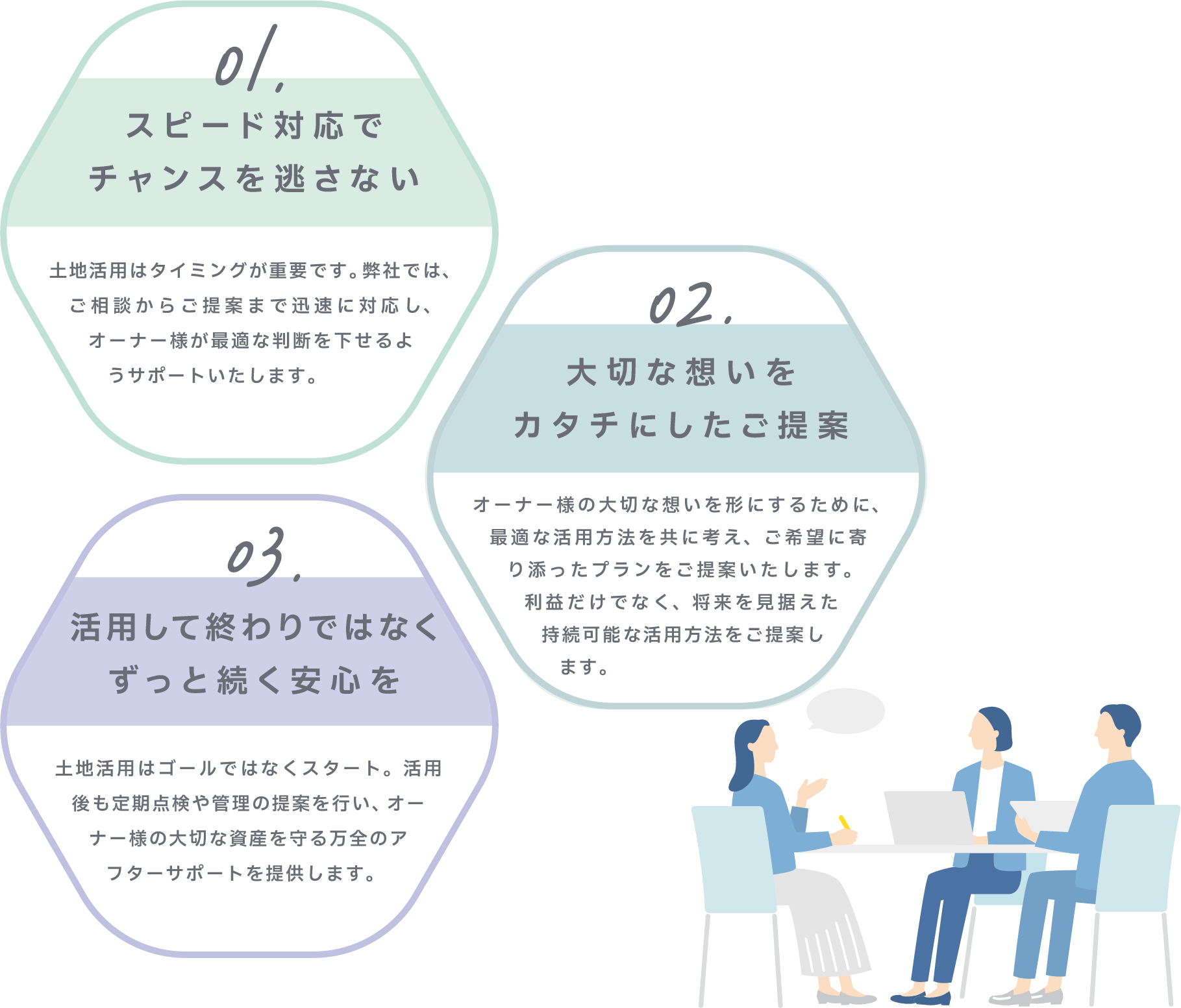 すべてはオーナー様の声に耳を傾けることから始まり、最適な資産活用をご提案。