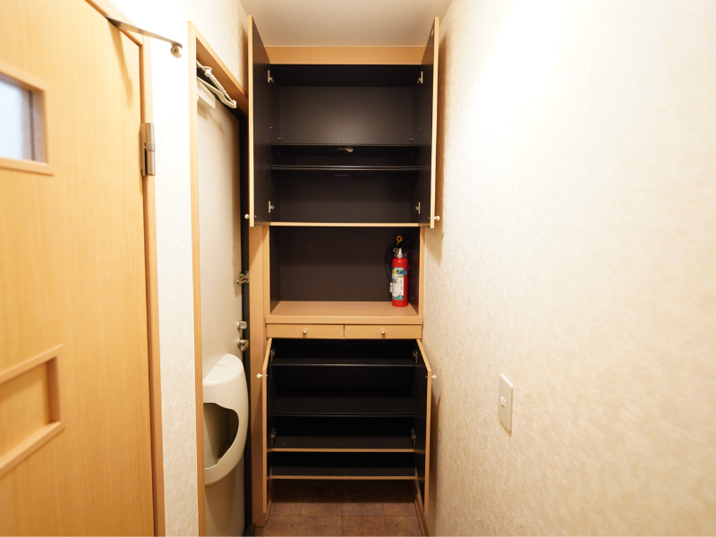 設備・特徴: 駐輪場・物置・日当たり良好・照明器具・室内洗濯機置き場・フローリング・シューズボックス・全居室収納・バス/トイレ別・カウンターキッチン・LPガス・モニタ付きインターホン・保証人不要・家賃保証会社利用可